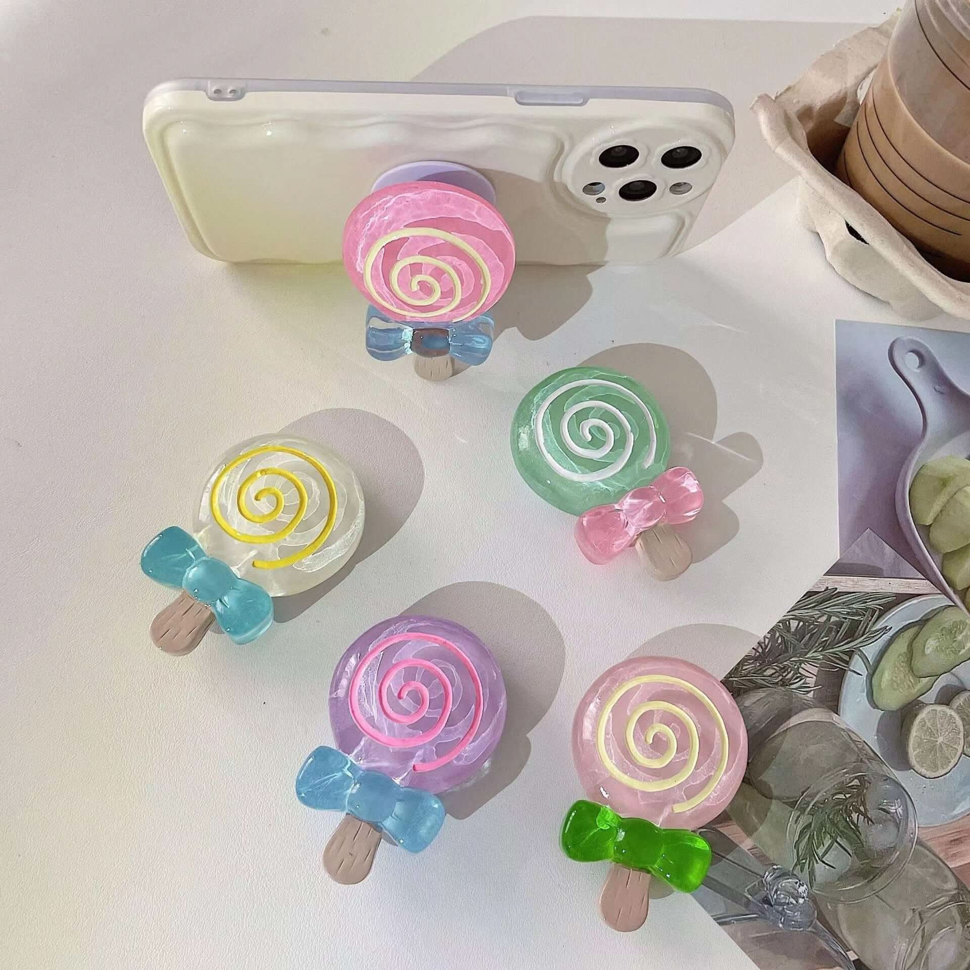 Ajoute une touche sucrée à ton bureau avec ce support de téléphone au look irrésistible ! Inspiré des sucettes colorées, ce gadget combine fonctionnalité, mobilité et style kawaii pour accompagner ton quotidien numérique avec charme.