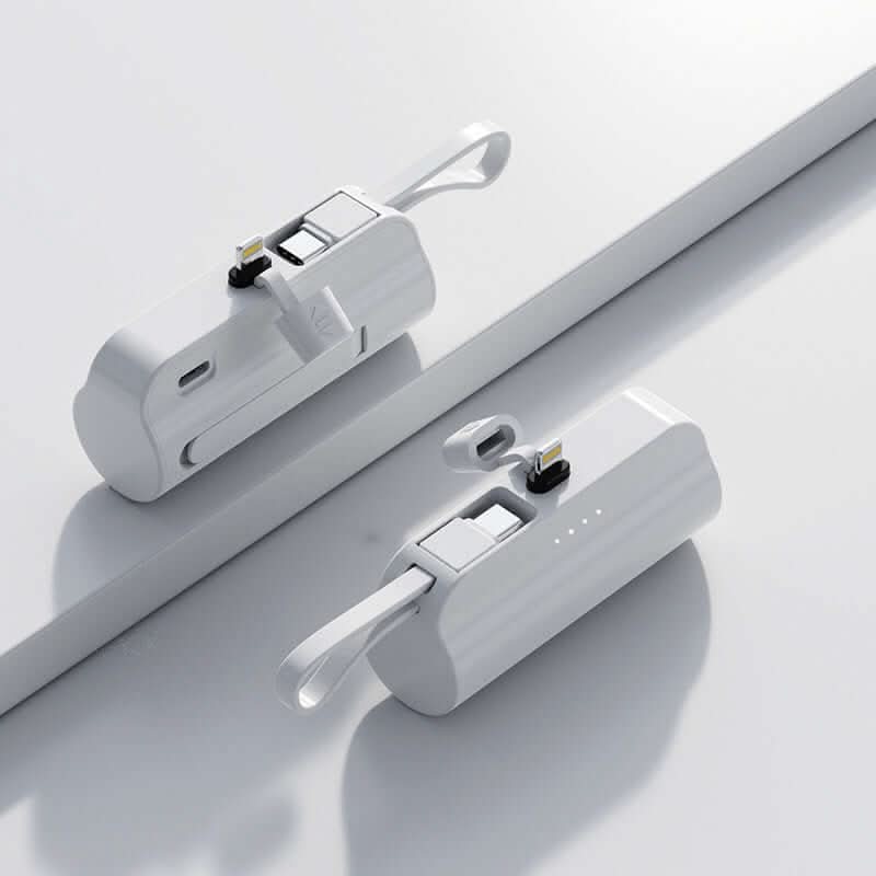 Ce power bank ultra-compact de 5000mAh est équipé d’un câble intégré pour une recharge rapide et pratique de vos appareils, sans avoir à transporter de câbles supplémentaires. Léger et facile à glisser dans une poche ou un sac, il est idéal pour les déplacements, les voyages ou les journées bien remplies.