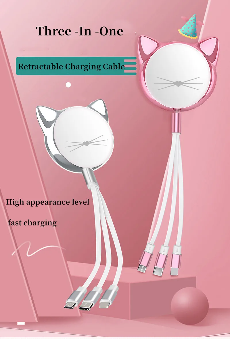 🚗 Mignonne Voiture à Câble de Données Fonction Télescopique 3‑en‑1