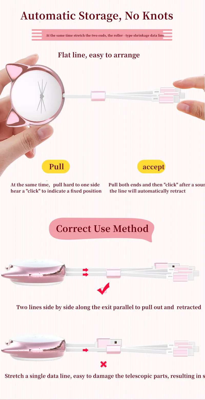 Mignonne voiture à câble de données à fonction télescopique