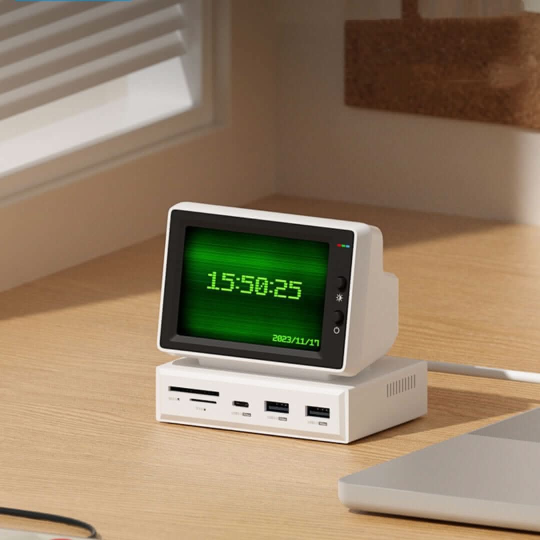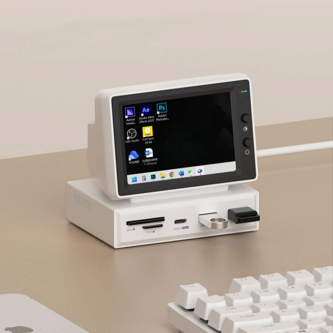 Cette Station d’extension avec écran secondaire d’ordinateur intègre un écran IPS de 3,5 pouces avec un angle de vision de 178°, parfait pour afficher en temps réel la température du processeur, l’utilisation de la RAM, l’heure, la météo ou des fonds d’écran dynamiques. Il est compatible avec AIDA64 et propose une connectivité multiple (USB, HDMI, DisplayPort, cartes SD/TF), idéale pour les setups gaming ou bureautiques.