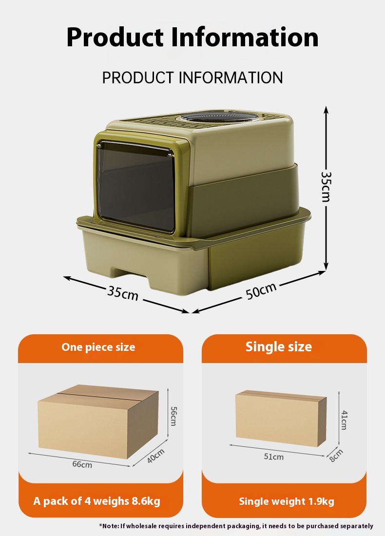 🐾 Bac à Litière Fermé Pliable – Grand Format, Plastique & Désodorisant