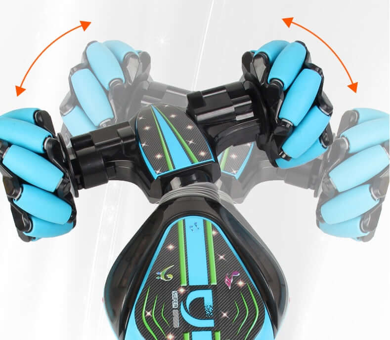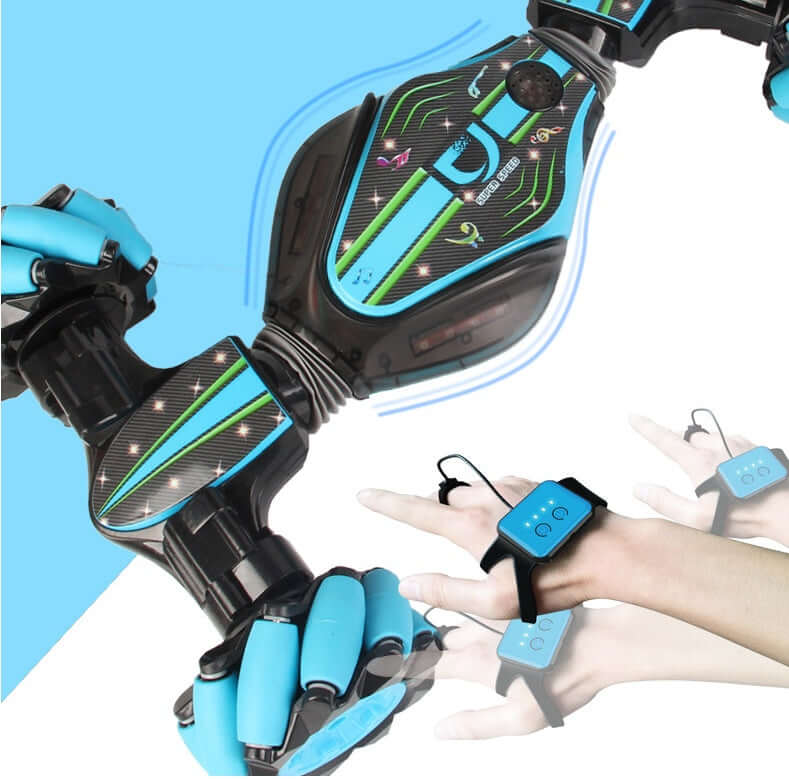 Cette voiture télécommandée multifonction est équipée d’un capteur de mouvement gestuel et d’une télécommande classique 2.4GHz, permettant deux modes de contrôle. Elle peut effectuer des rotations à 360°, des déformations latérales, des drifts, et rouler sur tous types de terrains : tapis, herbe, gravier, escaliers.