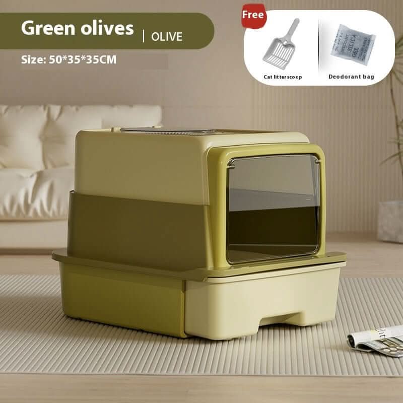 🐾 Bac à Litière Fermé Pliable – Grand Format, Plastique & Désodorisant