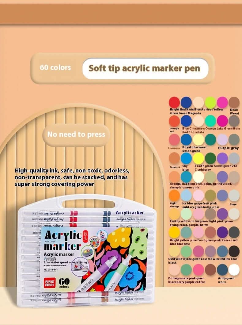 ️ Ensemble de Marqueurs Acryliques à Tête Souple – Couleurs Vives & Polyvalence Artistique
