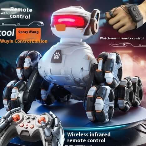 🤖 Robot Chien Télécommandé à 8 Roues – Cascade & Déformation Intelligente