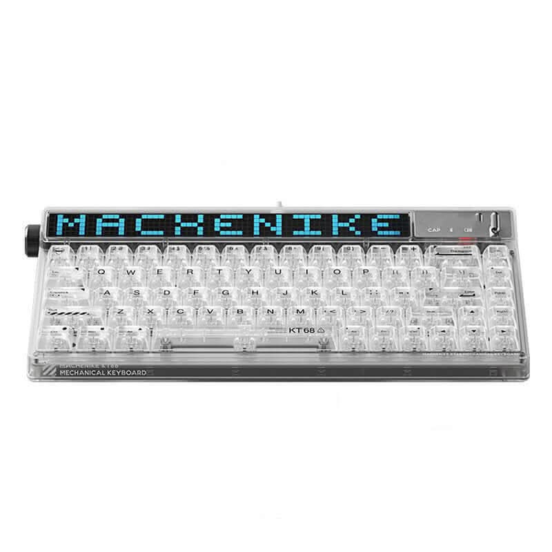 Un bijou technologique au design futuriste. Ce clavier combine transparence glacée, écran intelligent intégré, et connectivité tri-mode (Bluetooth, 2.4G sans fil, USB filaire) pour une expérience de frappe haut de gamme.