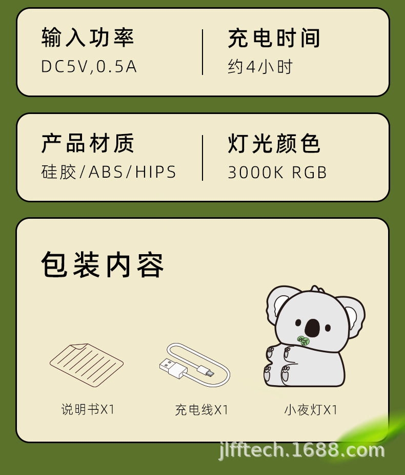 Lampe de nuit Koala – USB rechargeable, décoration mignonne et lumineuse