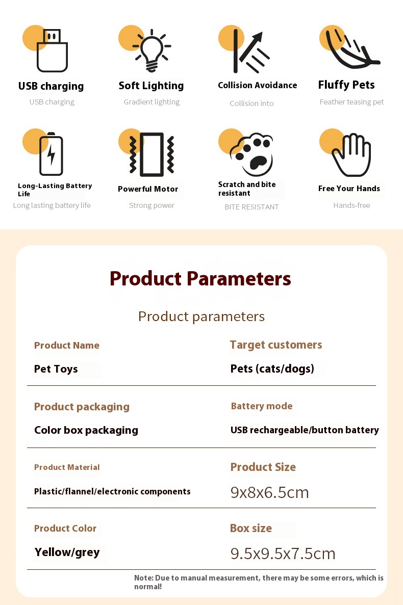 • Activation automatique : le jouet s’active seul lorsqu’il détecte un mouvement ou une pression, idéal pour les animaux seuls à la maison.