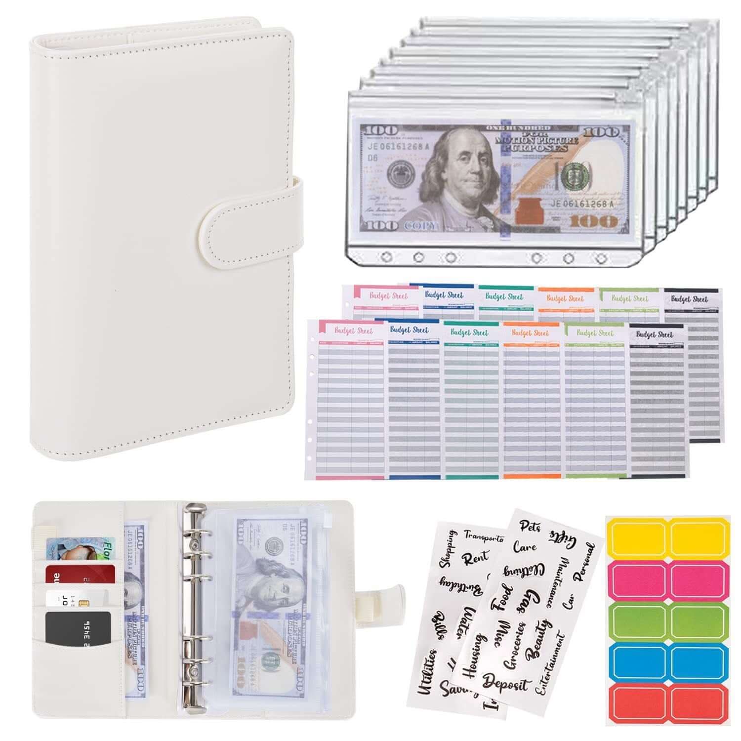 Carnet en cuir à feuilles mobiles Macaron avec pochette zippée – Porte-documents et porte-billets