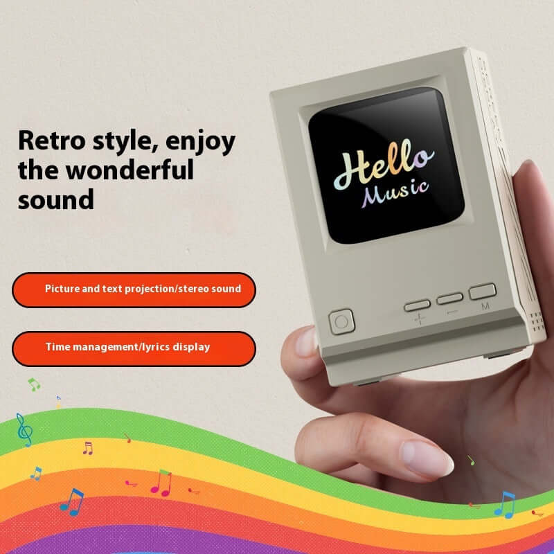 🕰️ Haut-parleur Bluetooth Rétro – Mini Ordinateur avec Affichage de Paroles & Horloge de Bureau