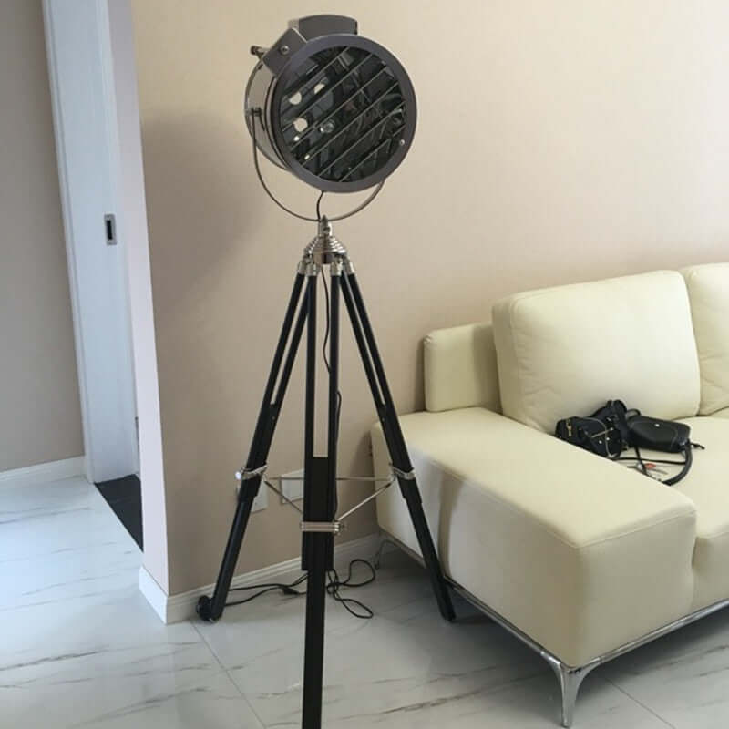Apportez une touche théâtrale et sophistiquée à votre intérieur avec ce lampadaire au design industriel inspiré des projecteurs de scène. Son trépied robuste et son abat-jour en bois en font une pièce maîtresse à la fois fonctionnelle et décorative.